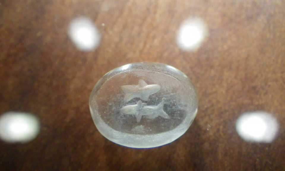 穴の空いたビーズもなかなかないのですが、このインタリオタイプはもっと珍しいです。