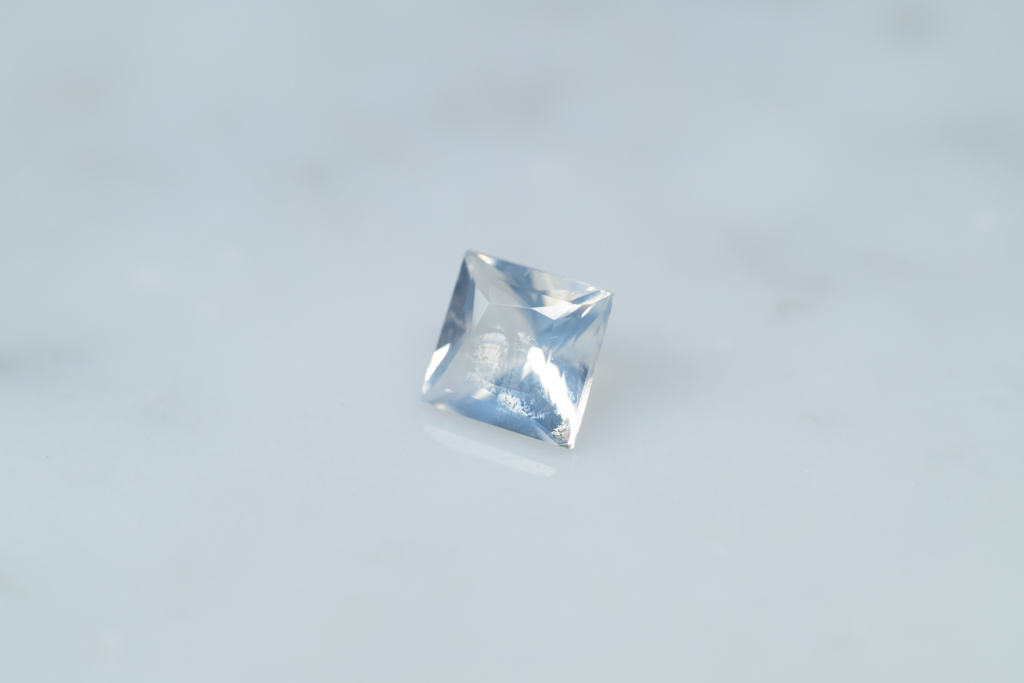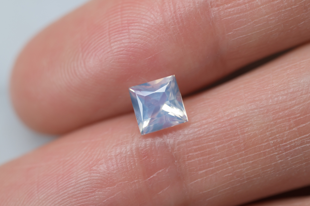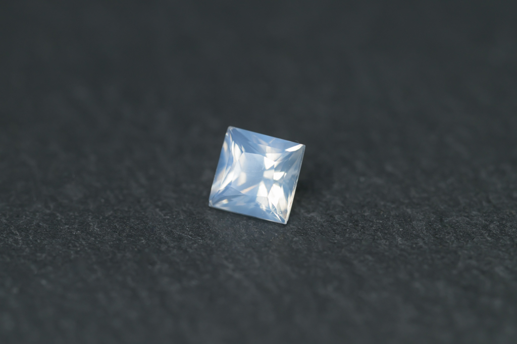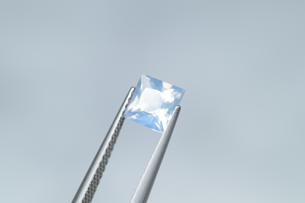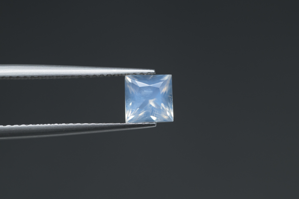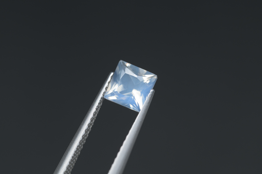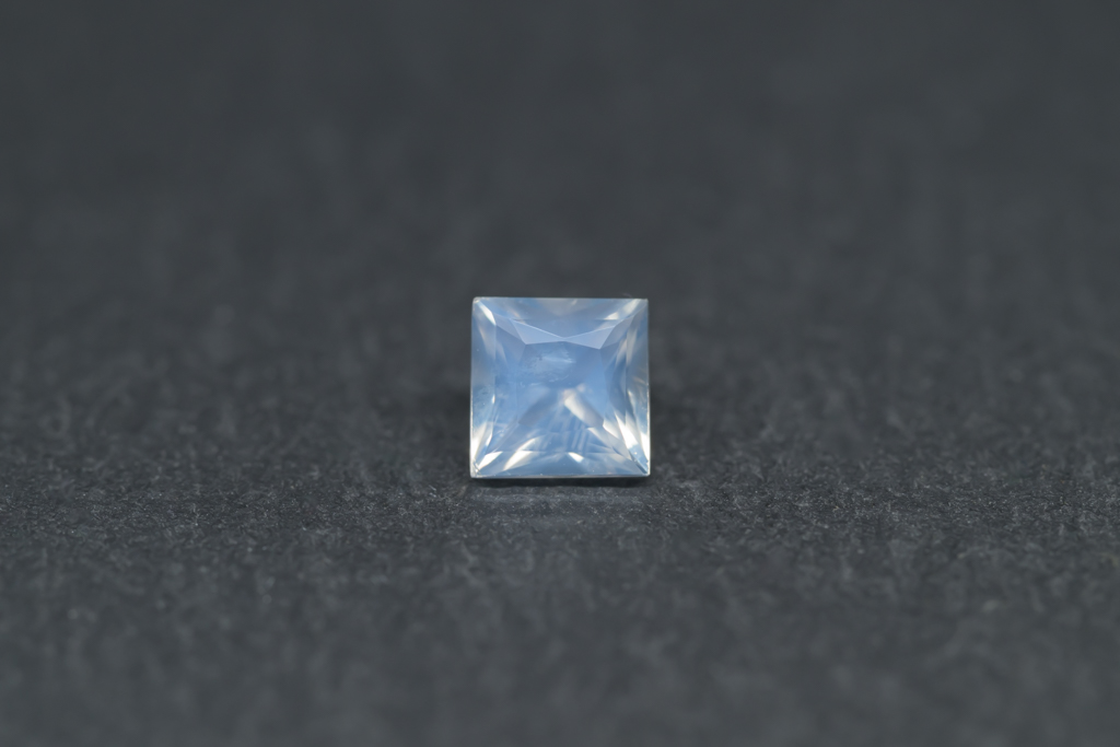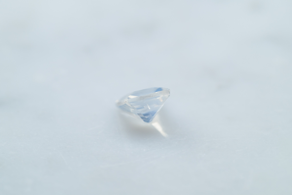 角度によってシルキー感を帯びる 透き通った地色が美しく、滲むように広がる淡いブルーのシラーや個性的なインクルージョンが魅力的なスリランカ産のムーンストーンです。