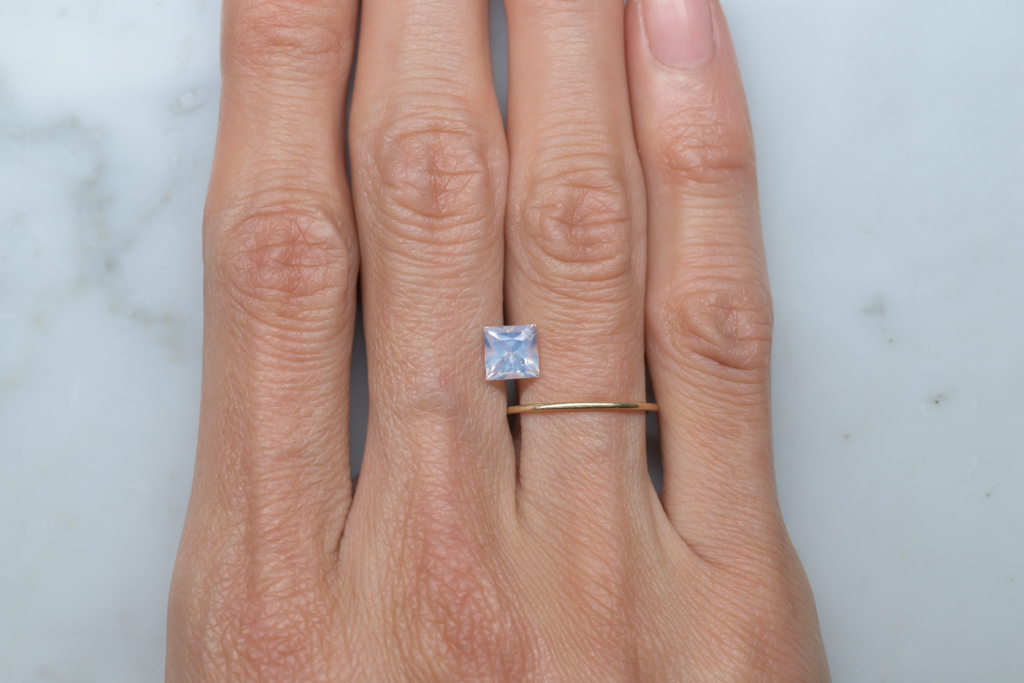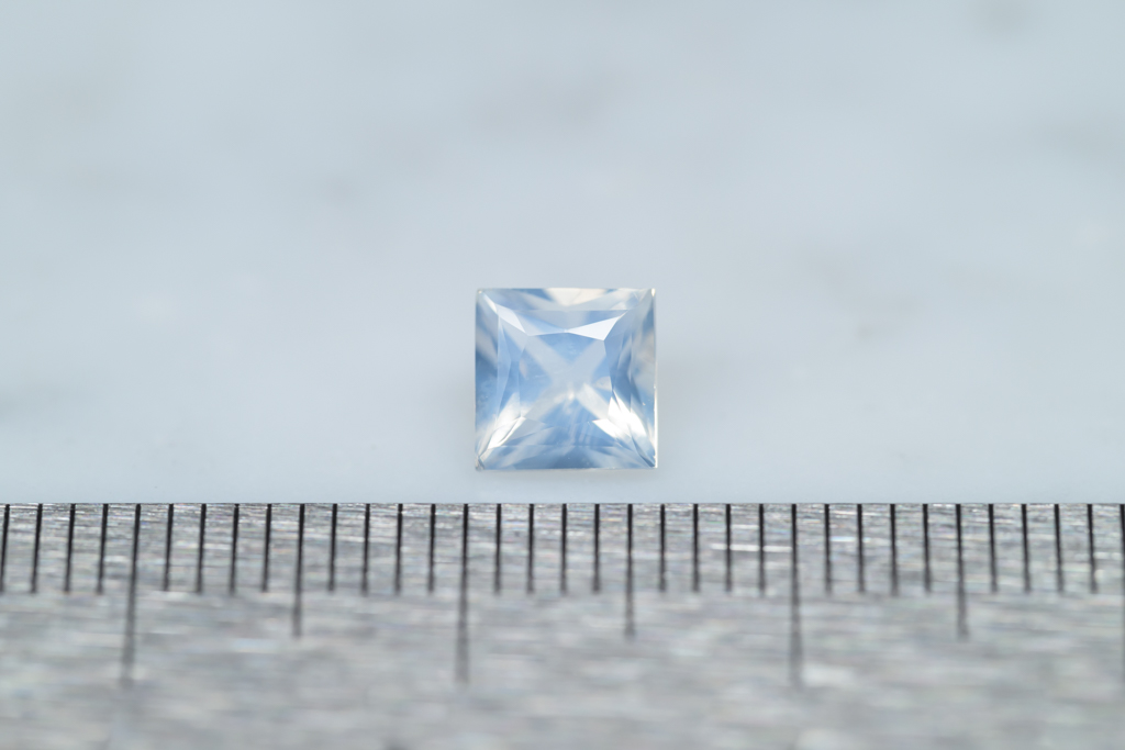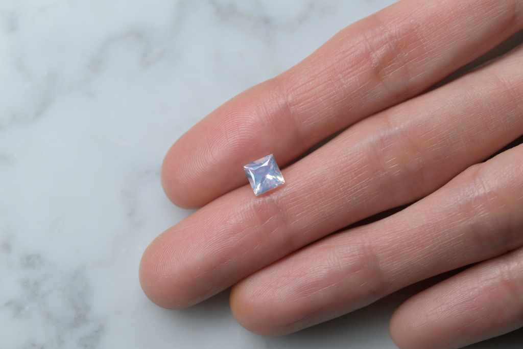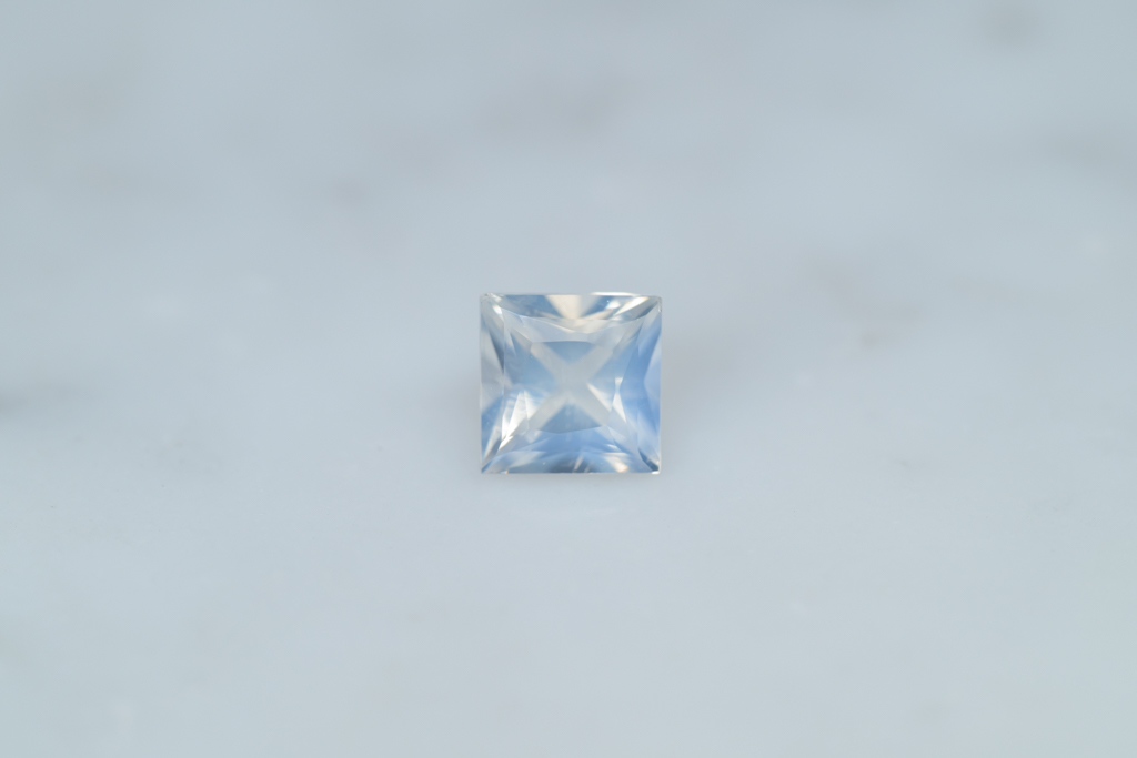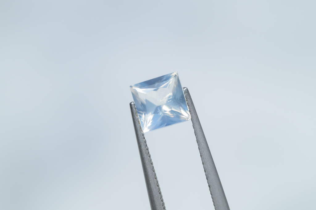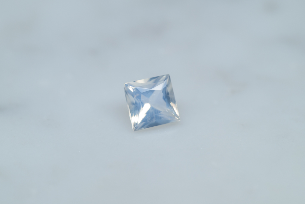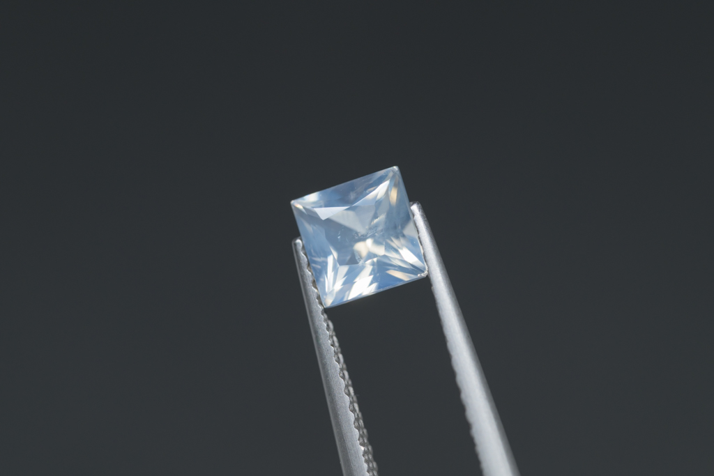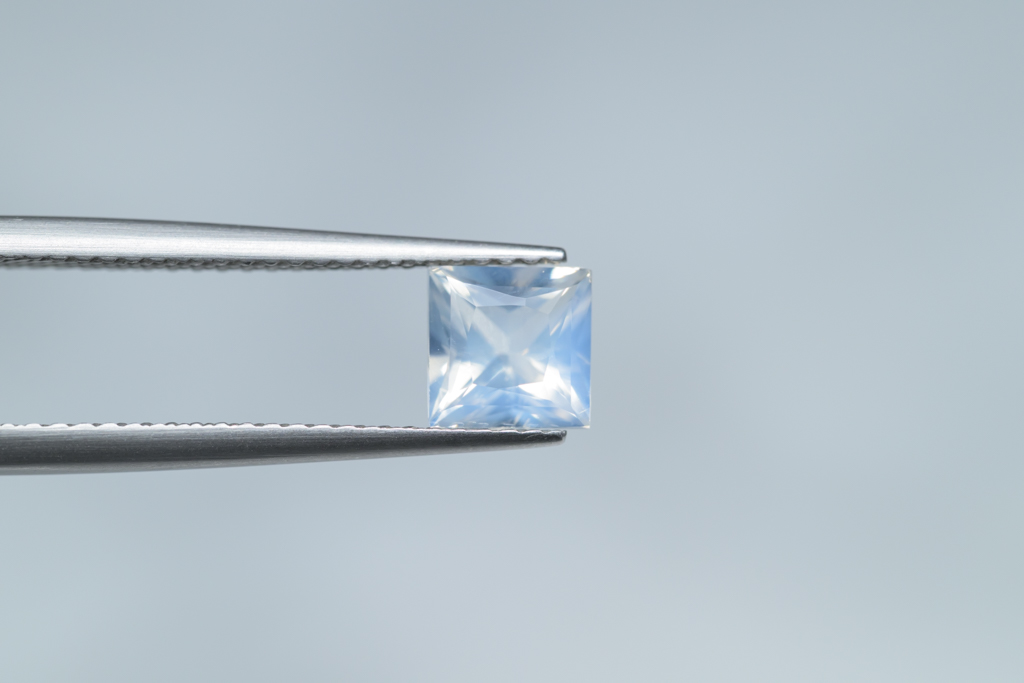 角度によってシルキー感を帯びる 透き通った地色が美しく、滲むように広がる淡いブルーのシラーや個性的なインクルージョンが魅力的なスリランカ産のムーンストーンです。