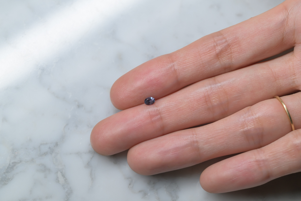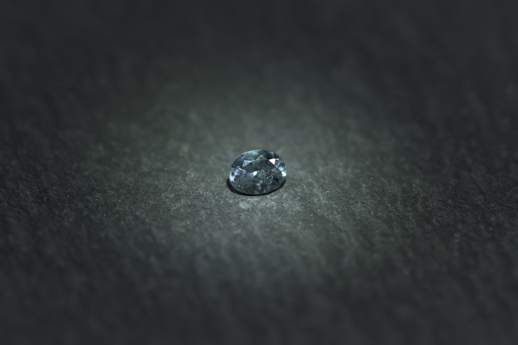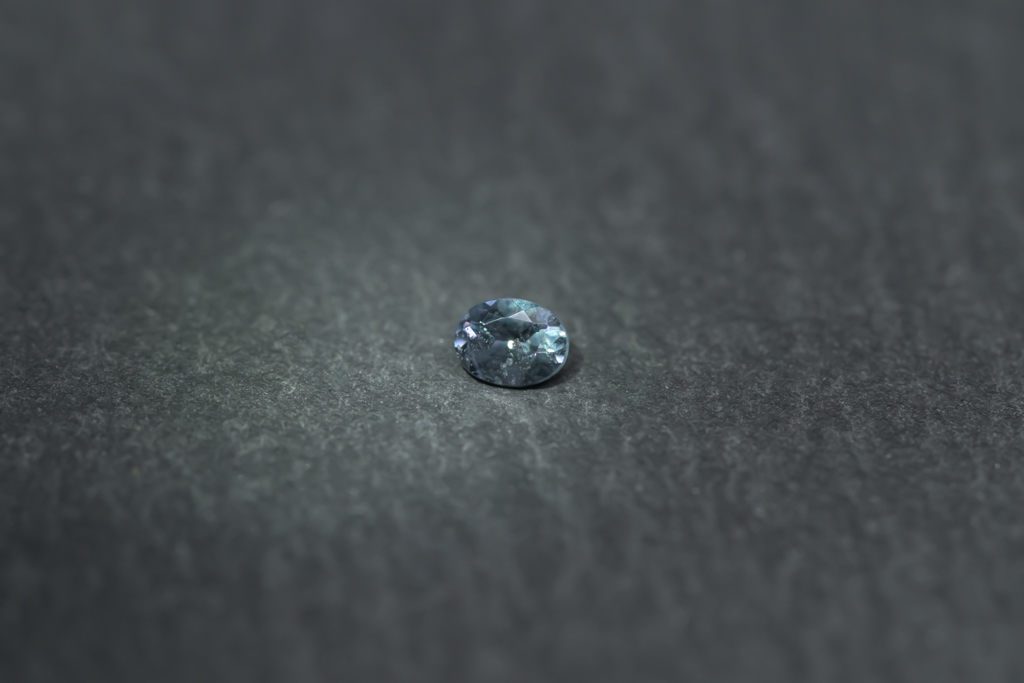 ベキリー地区特有の、ほんのりと青みを帯びた発色が魅力的なマダガスカル産のカラーチェンジガーネットです。室内の照明では青みが際立ち、自然光の下ではクールなアッシュグリーンに、オレンジ系の光の下では落ち着いたパープルピンクへとカラーチェンジする 多彩な表情を楽しめるルースです。