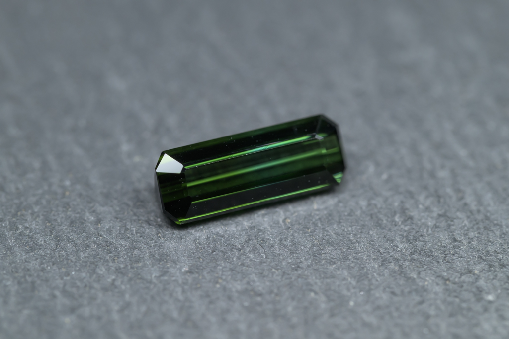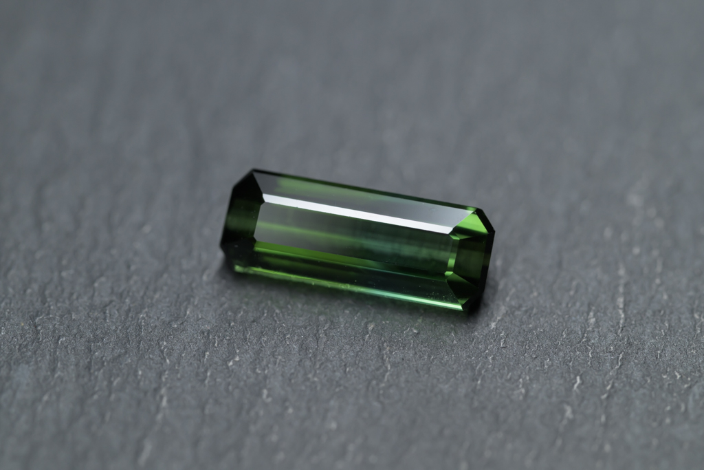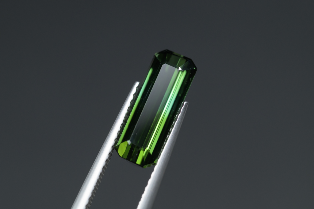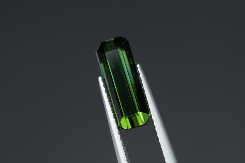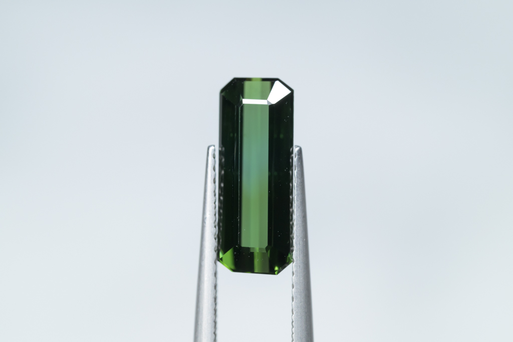 深いグリーンに 明るいグリーンのグラデーションが流れるように輝くナイジェリア産のトルマリンです。透明度が高く、結晶の形を生かしたシャープなカットや、森林を思わせるような瑞々しいグリーンの発色が魅力的なルースです。
