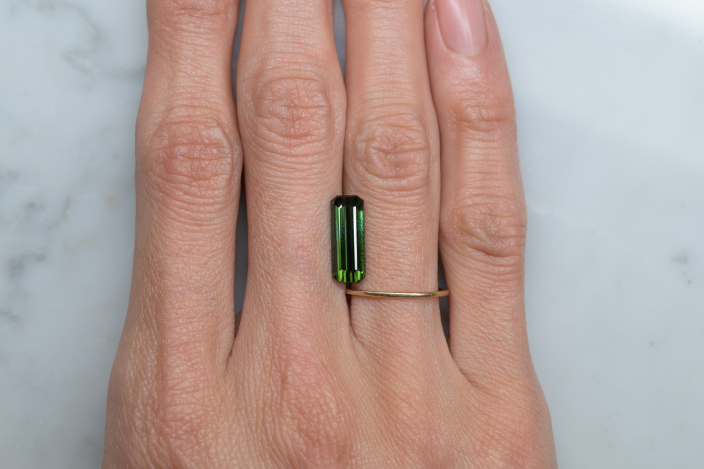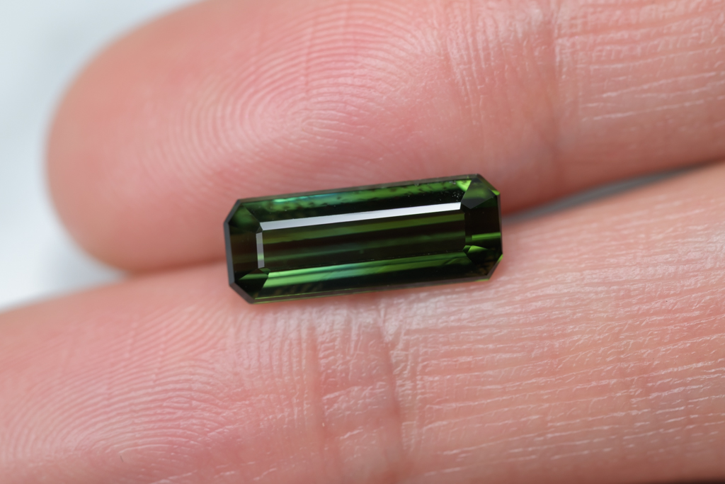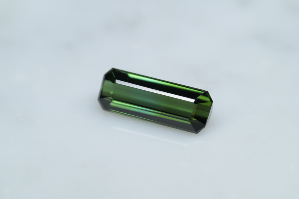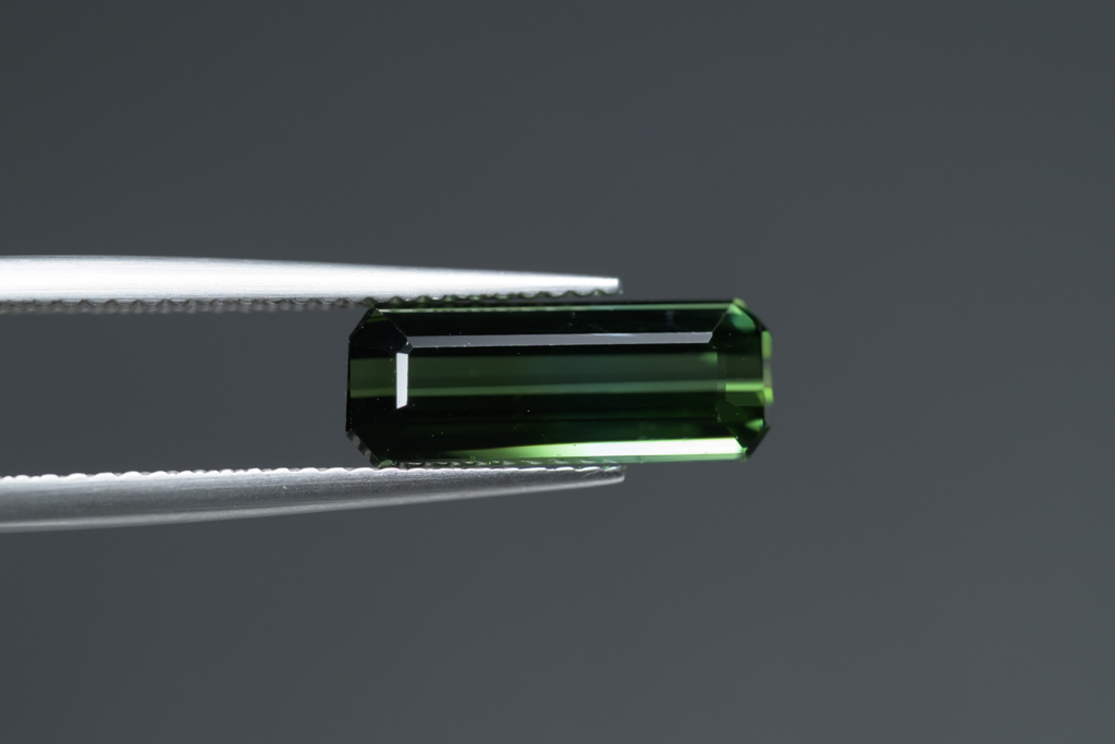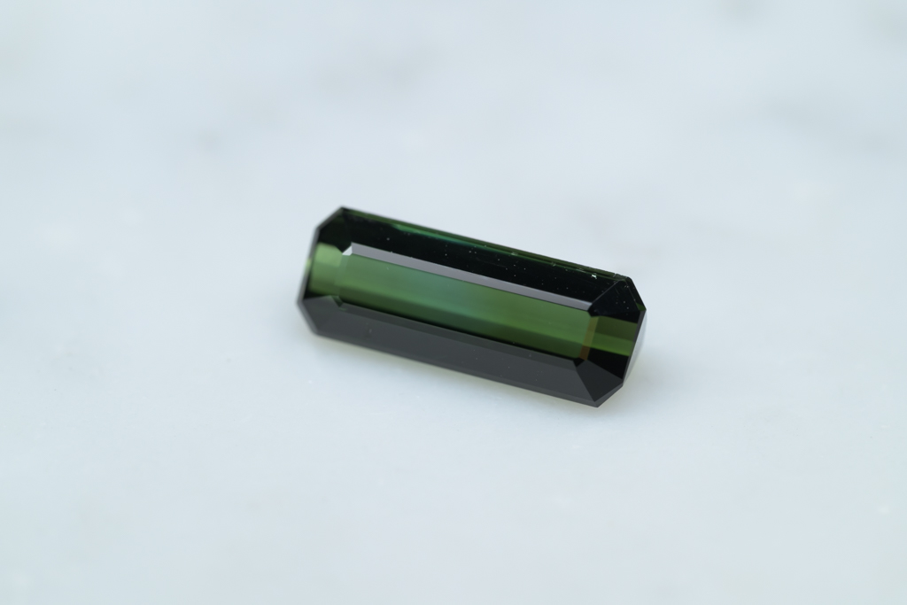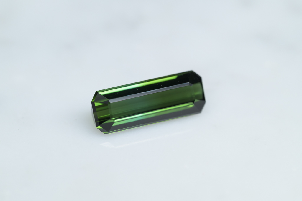 深いグリーンに 明るいグリーンのグラデーションが流れるように輝くナイジェリア産のトルマリンです。透明度が高く、結晶の形を生かしたシャープなカットや、森林を思わせるような瑞々しいグリーンの発色が魅力的なルースです。