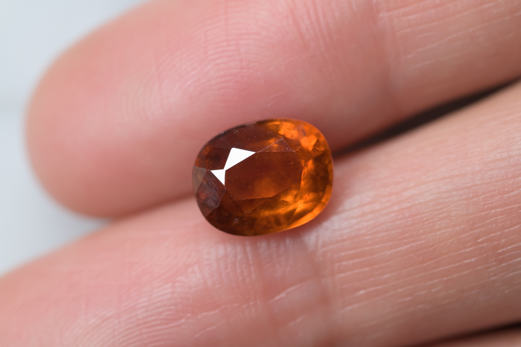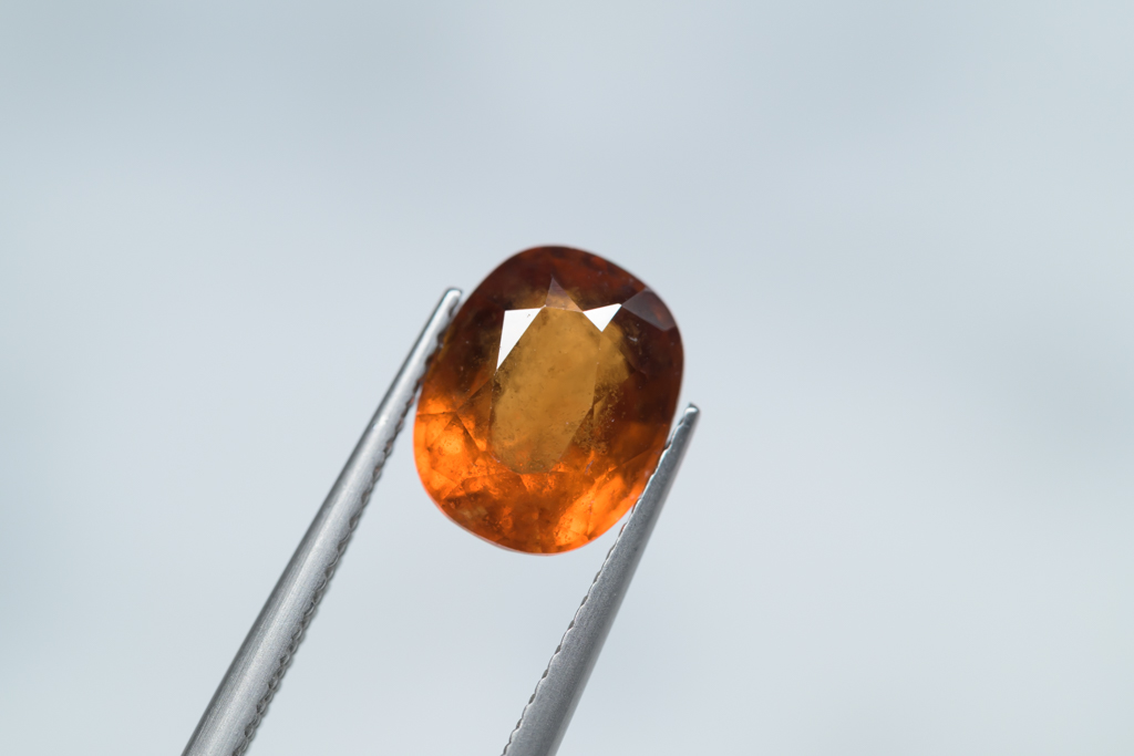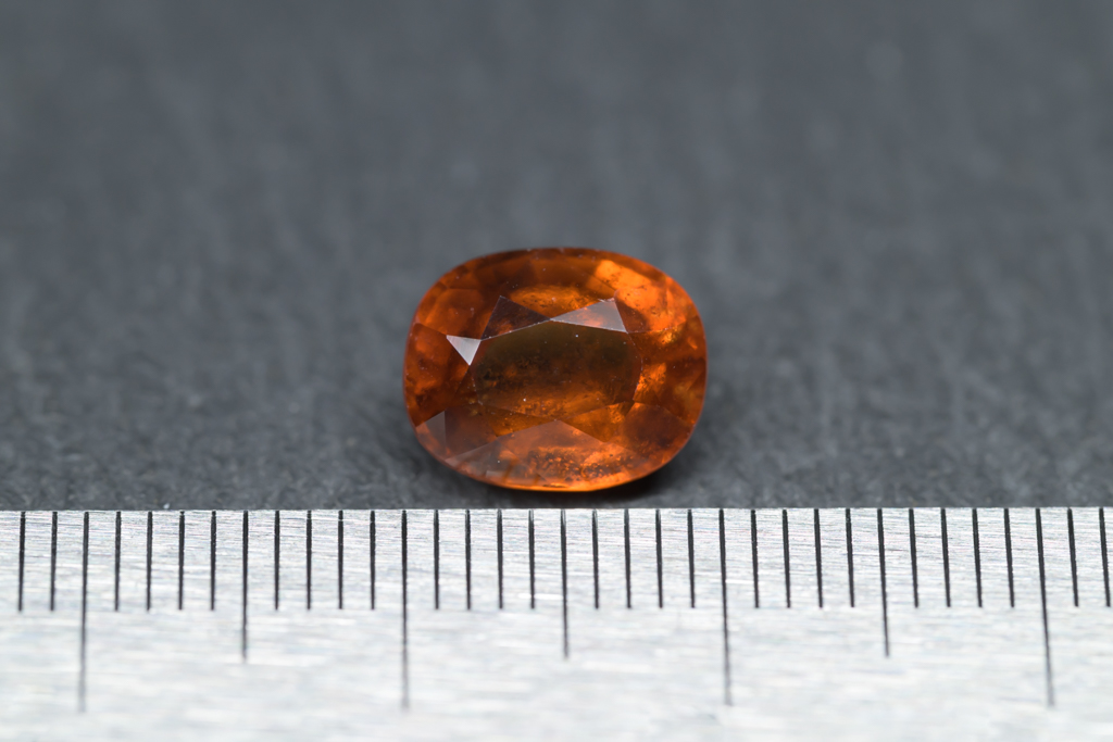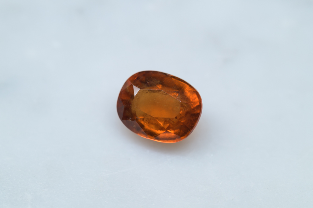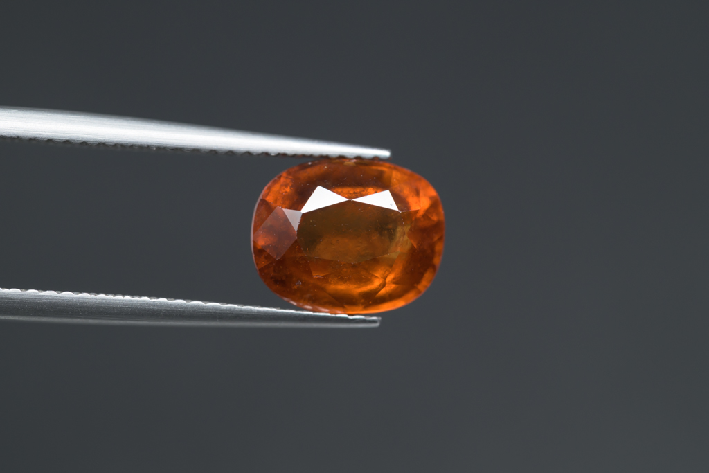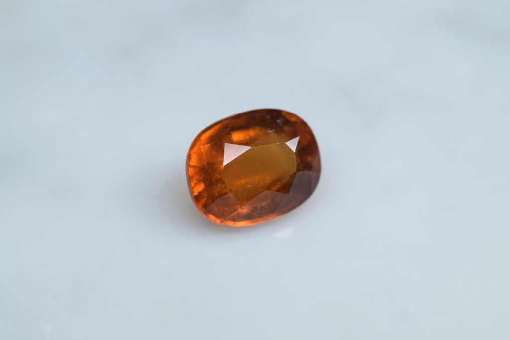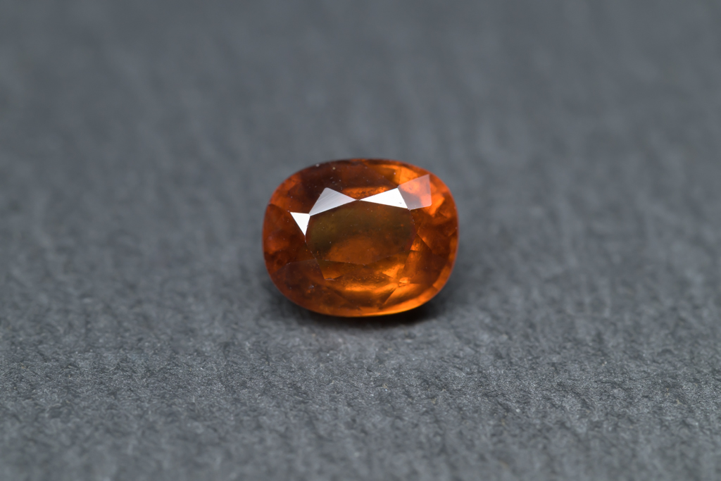 ふんわりと赤みを帯びたオレンジブラウンから鮮やかなオレンジの光がキラリと覗くスリランカ産のヘソナイトガーネットです。