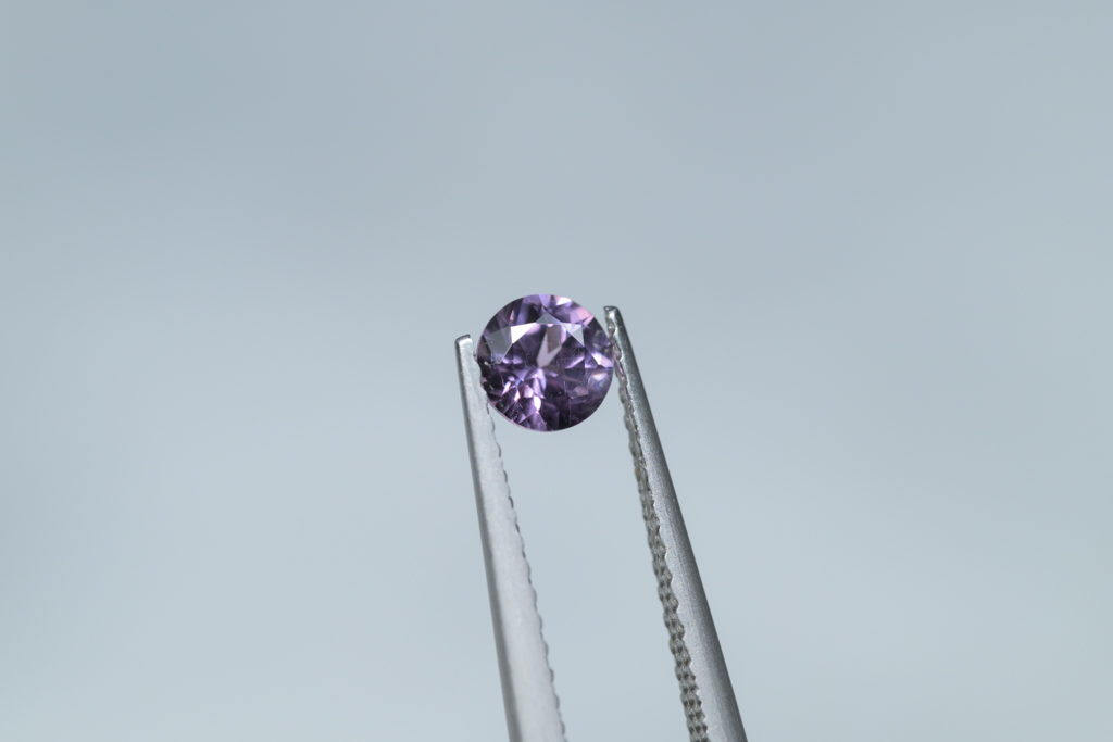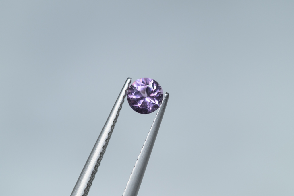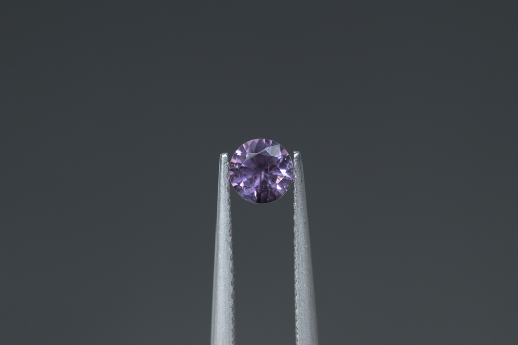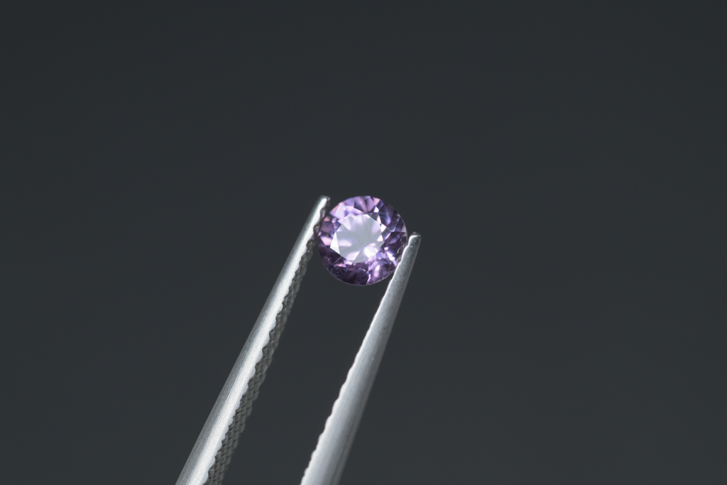 透明度が高く、グレイッシュなパープルの奥から淡いパープルやピンクの光が輝くスリランカ産のパープルスピネルです。