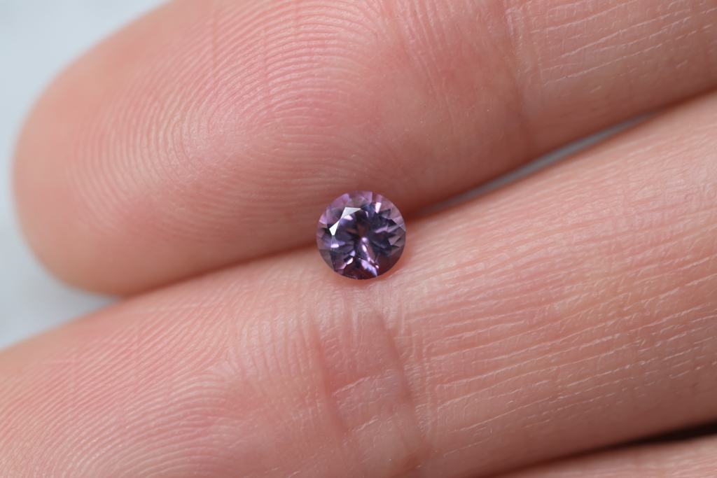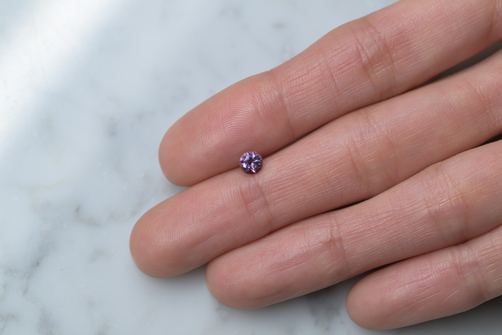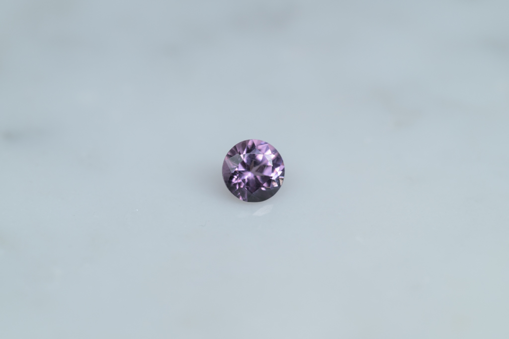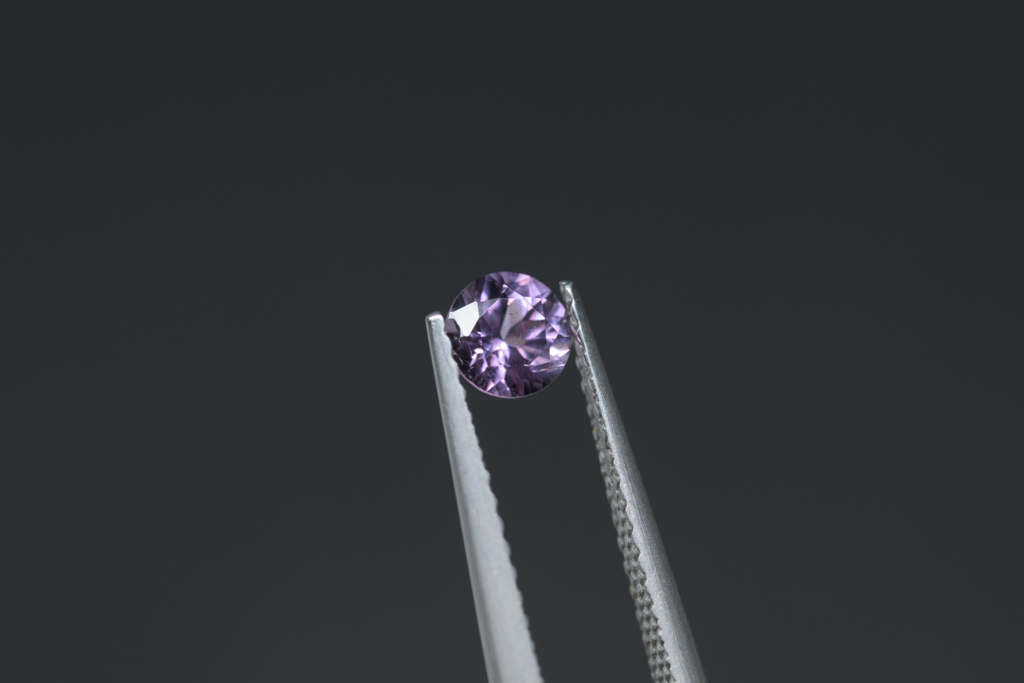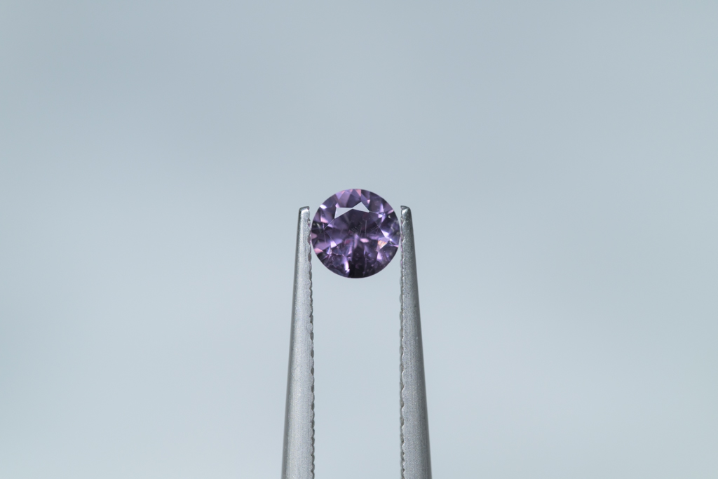 透明度が高く、グレイッシュなパープルの奥から淡いパープルやピンクの光が輝くスリランカ産のパープルスピネルです。