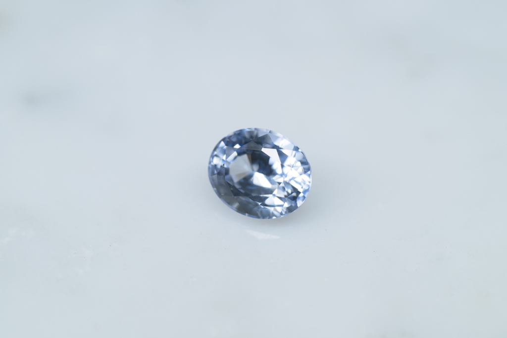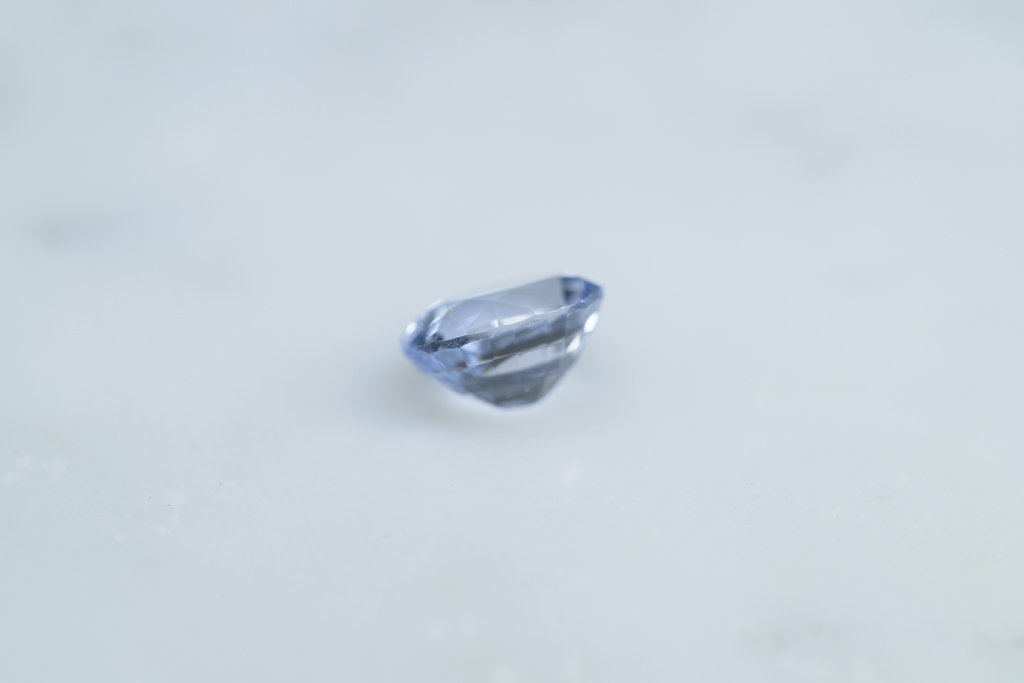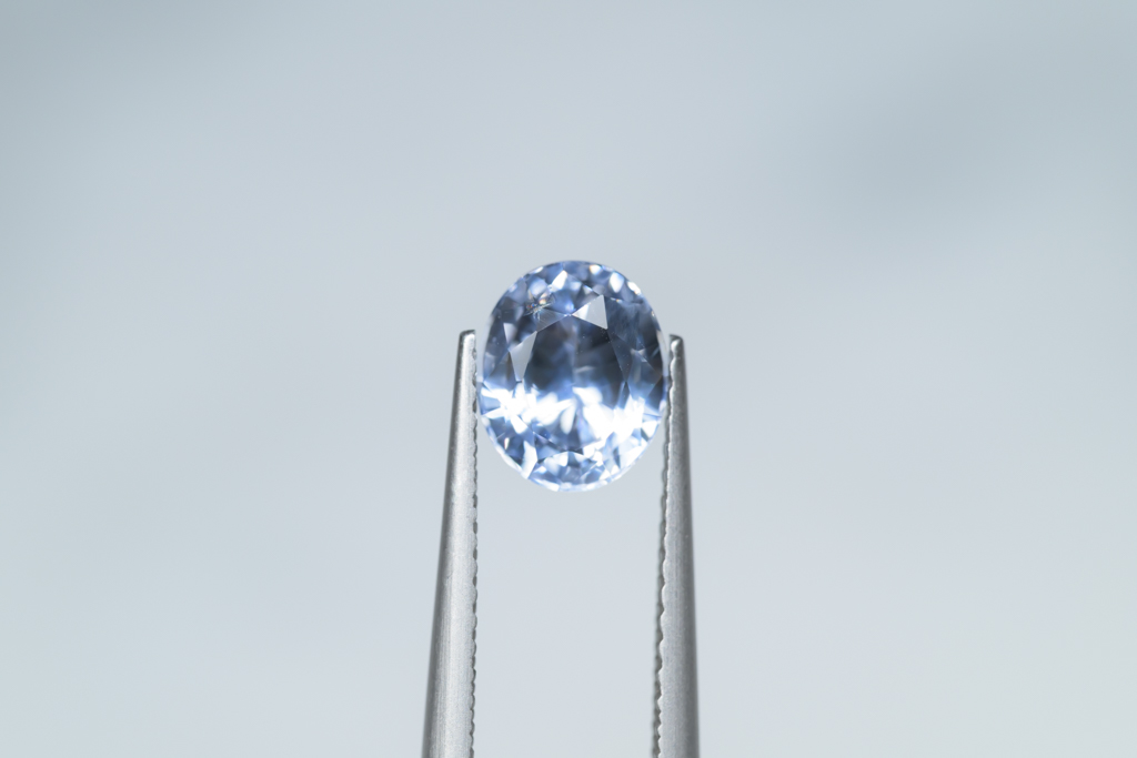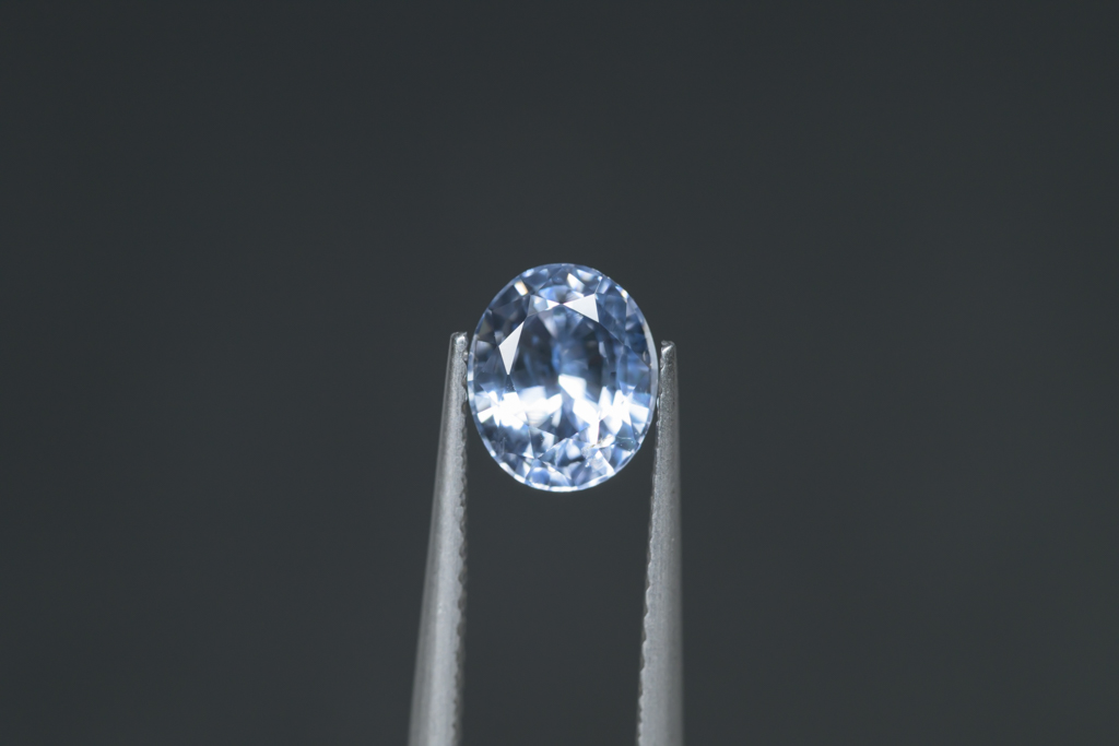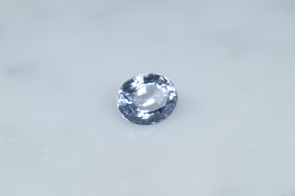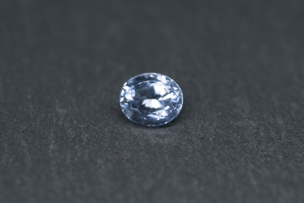 カラーレスに近い澄んだ色味の中に ほんのりとブルーの光が揺らめくような幻想的な色合いが魅力的なスリランカ産のサファイアです。