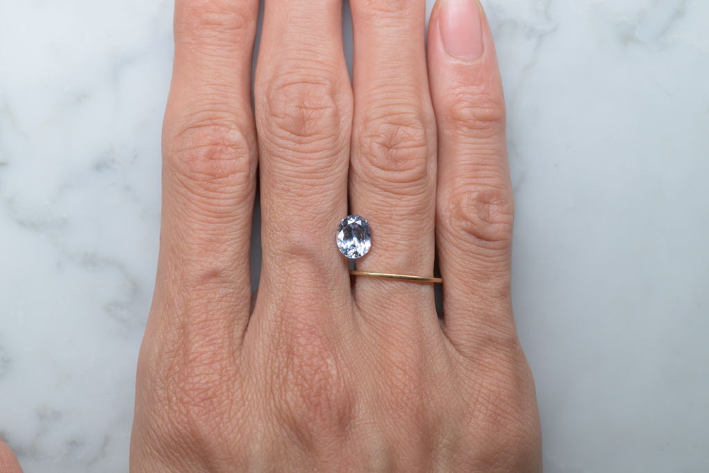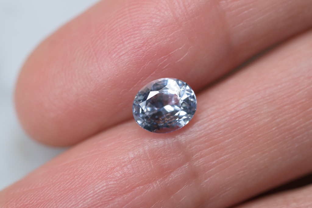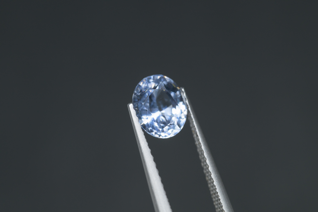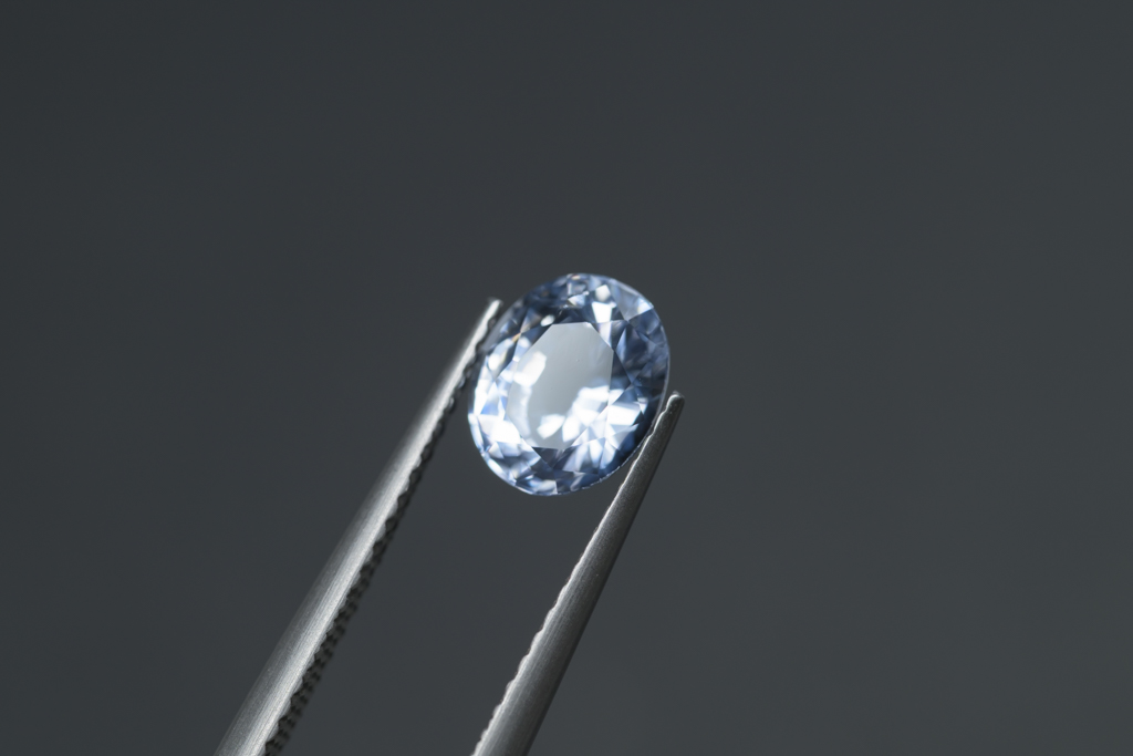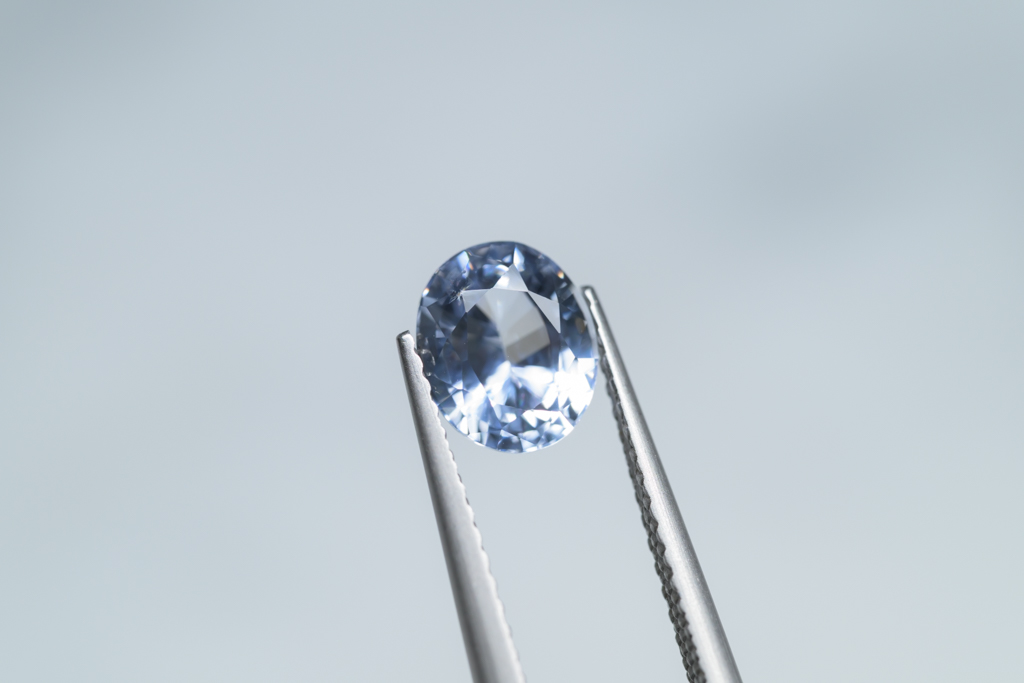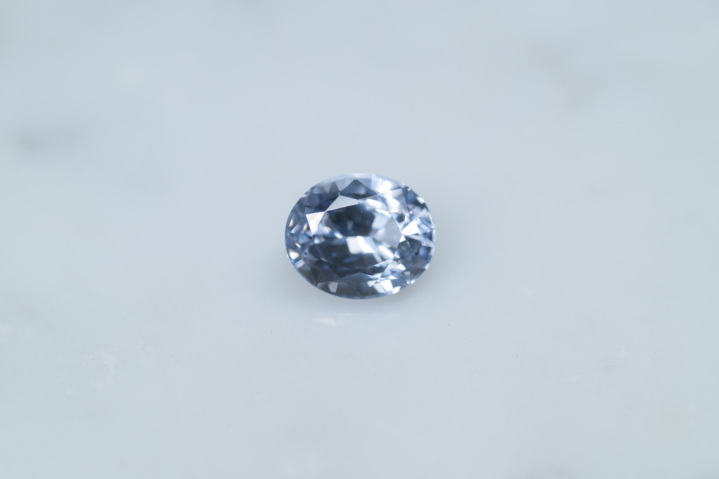 カラーレスに近い澄んだ色味の中に ほんのりとブルーの光が揺らめくような幻想的な色合いが魅力的なスリランカ産のサファイアです。