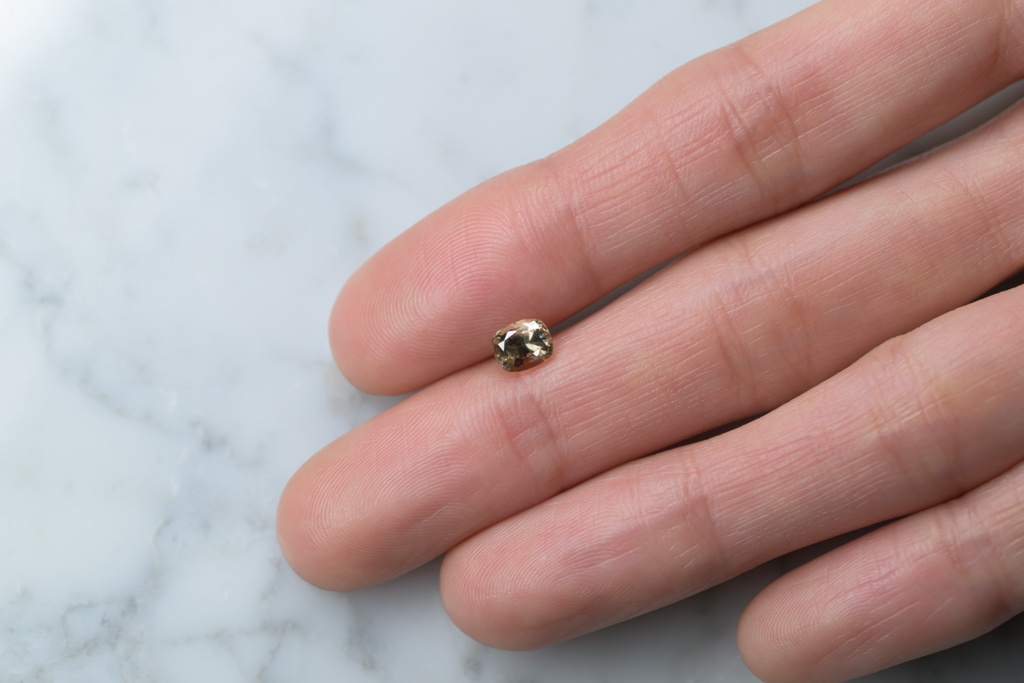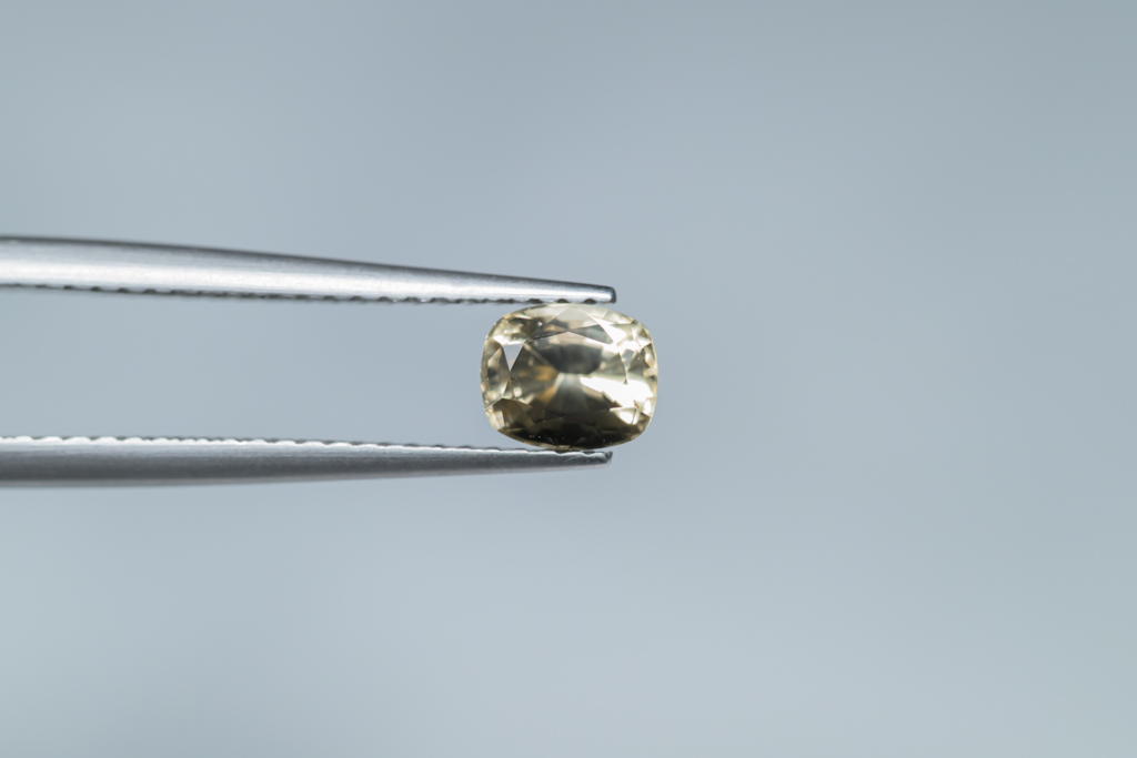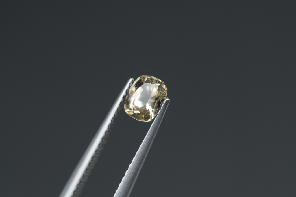 美しい光をそっと閉じ込めたような淡いゴールドが穏やかに輝くスリランカ産のシンハライトです。